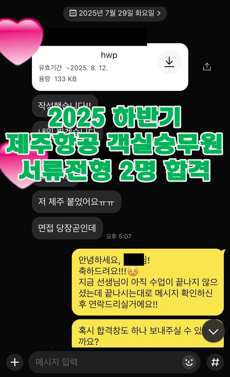 <2025 하반기 제주항공 객실승무원 서류전형 2명 합격!>