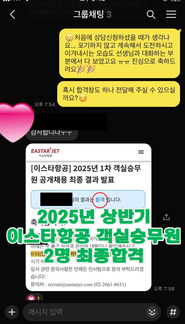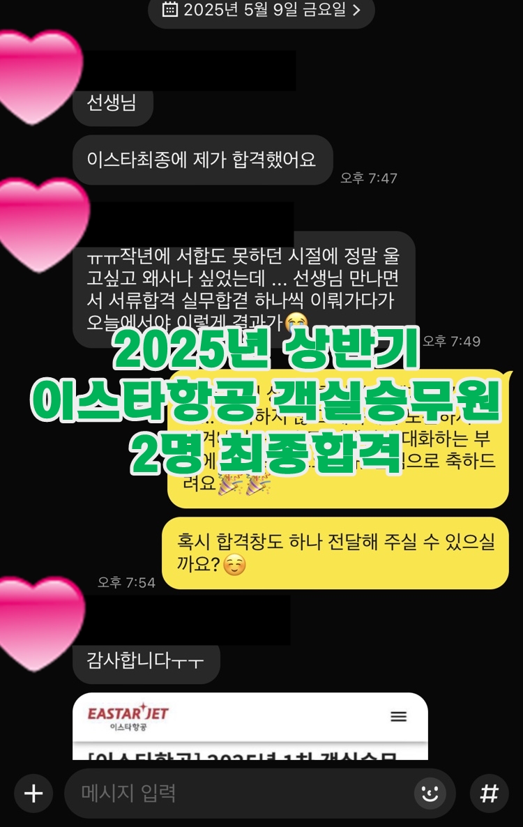 <2025 상반기 이스타항공 객실승무원 2명 최종면접 합격>
